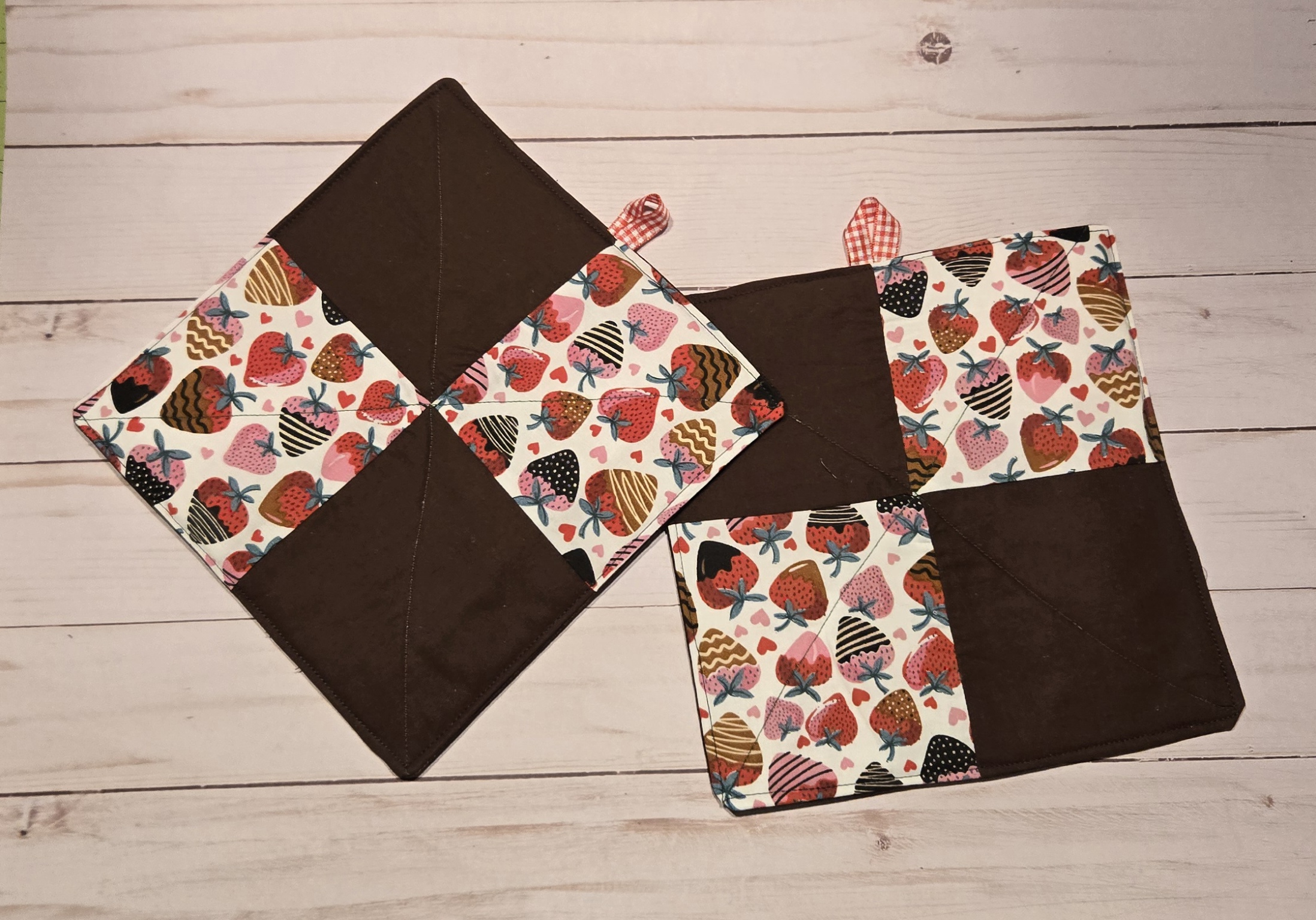 Hot Pads Set of two: Large: Chocolate Covered Strawberry