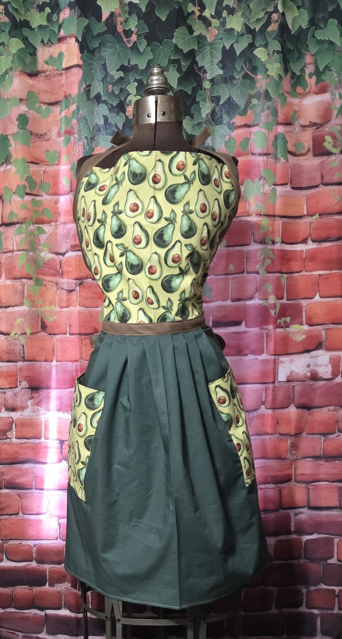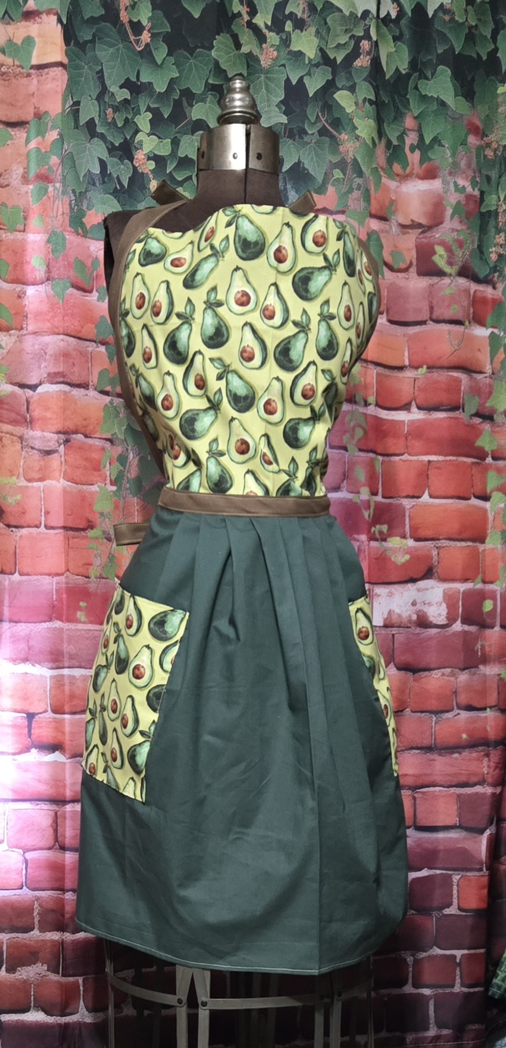Kitchen Apron Full: Food, Avocado top, Green skirt with 2 pockets