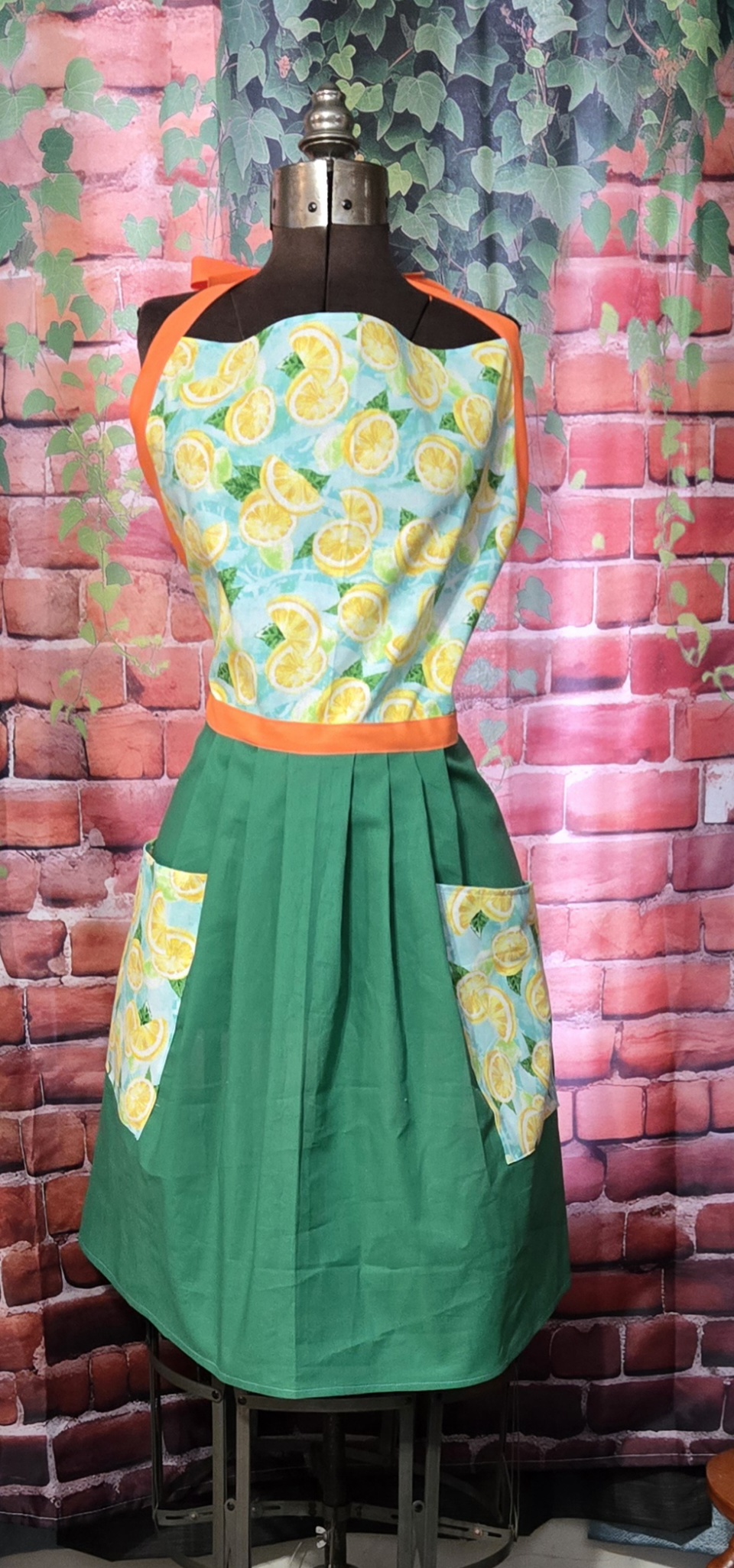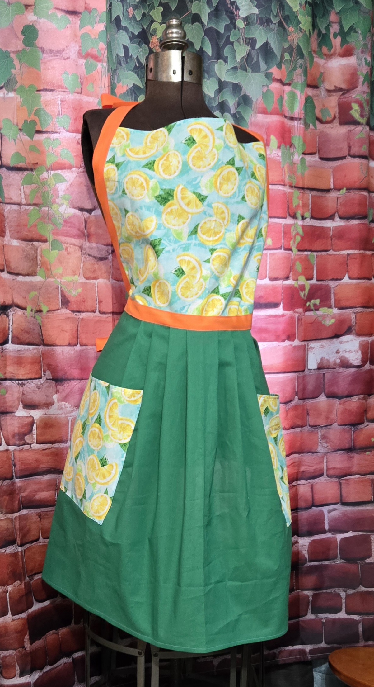 Be the first to review “Kitchen Apron Full: Lemons; Print Top, Green skirt with 2 pockets”